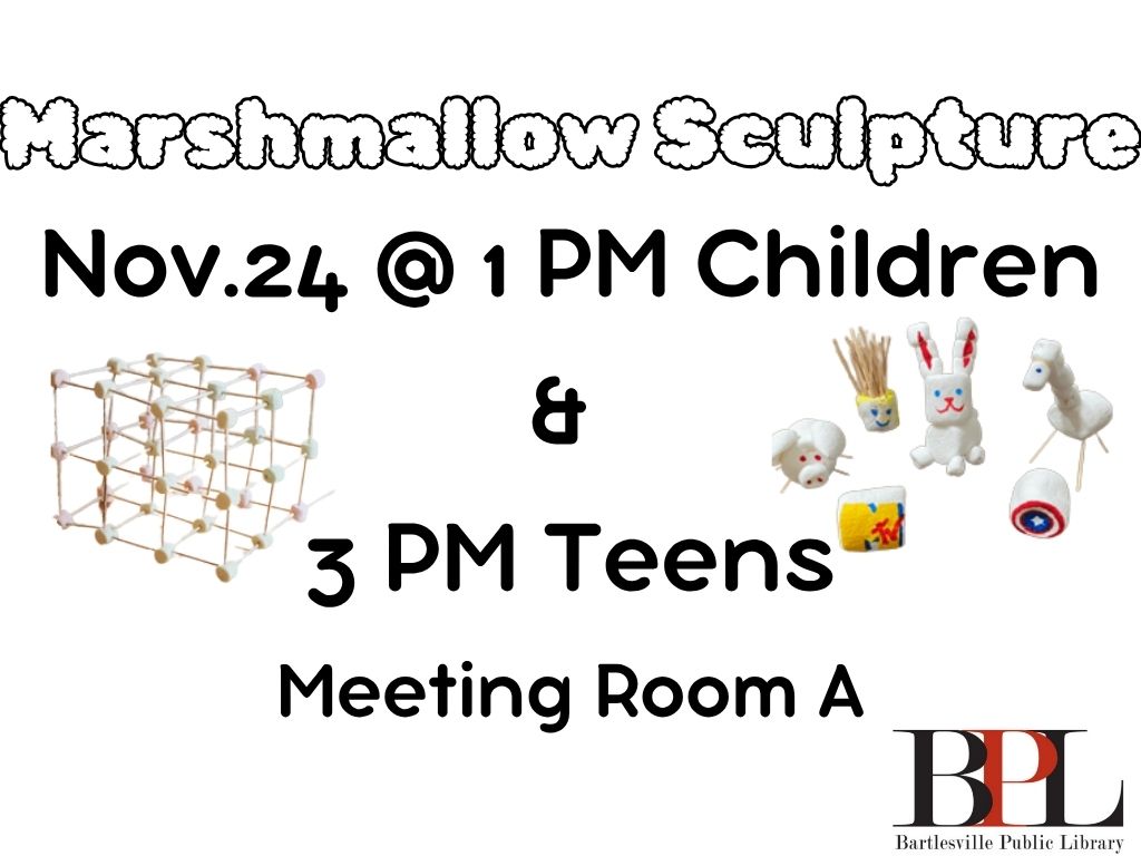 Children and teens join us next week for a fun time making marshmallow sculptures.