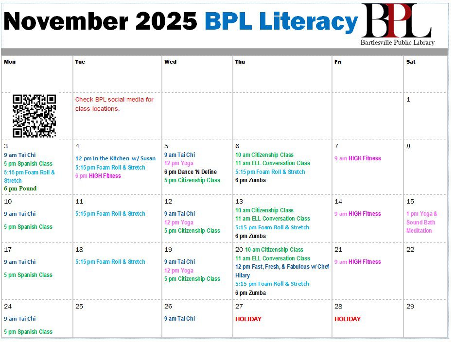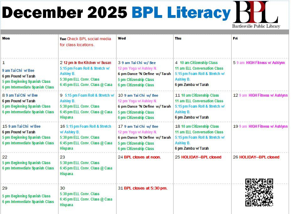 CONTACT: Cheryl Dorris, Literacy Coordinator. 918-338-4179, literacy@cityofbartlesville.org.